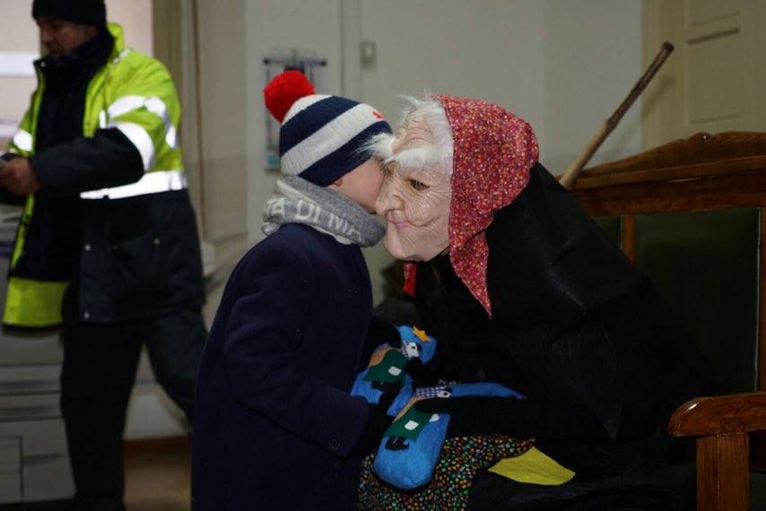 subito dopo ha accolto i bambini che sfidando la nevicata sono andati a trovarla.