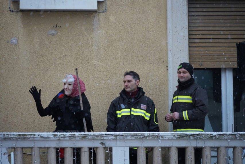 Nel pomeriggo del sei gennaio, mentre una nuova nevicata ha steso un 'altro velo bianco su Piazza della Repubblica, la befana , come promesso, è arrivata ad Ortona.