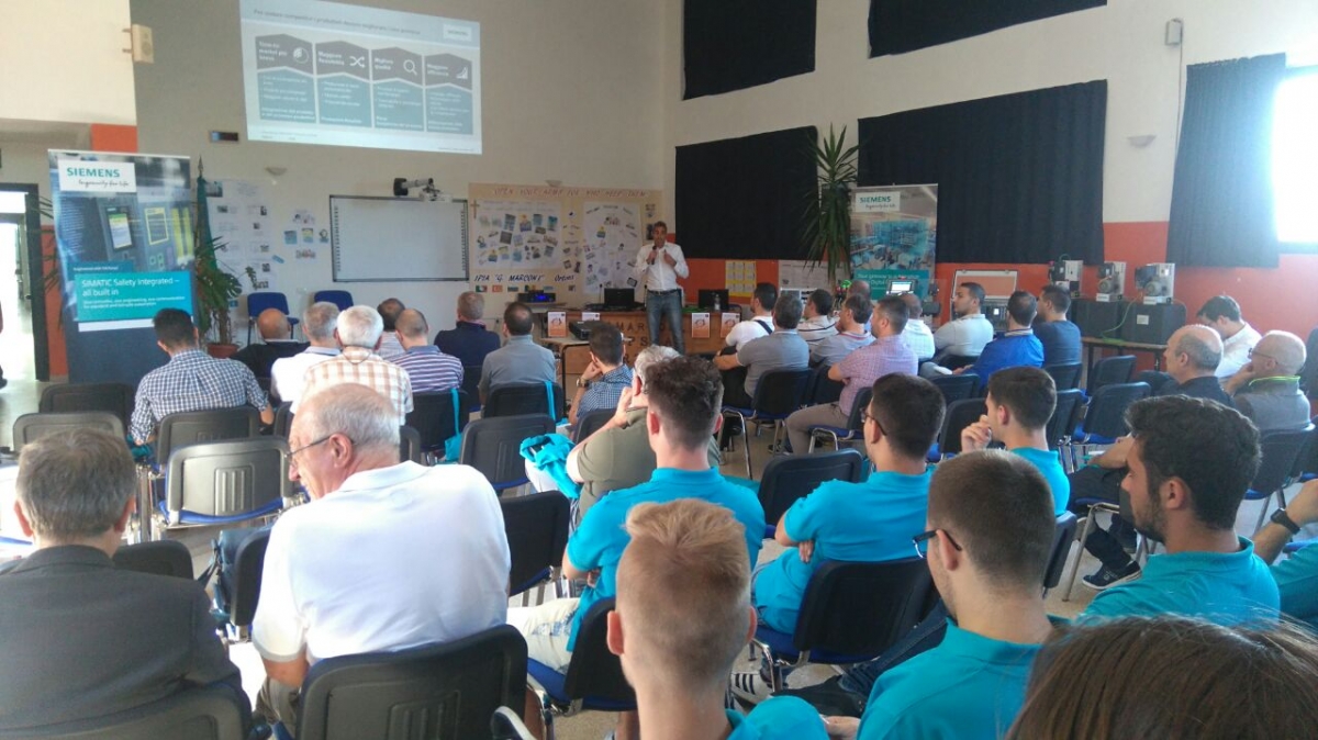 “Recentemente la Siemens ha cominciato a cooperare con Istituti scolastici”, afferma il docente Polidoro Luigi, promotore dell’evento “viene finalmente riconosciuto all’istituzione scolastica il giusto ruolo di supporto all’industria, di elemento di raccordo tra il territorio e gli operatori economici. La scuola, con le sue dotazioni tecnologiche e le risorse umane a disposizione, deve aprirsi al territorio offrendo servizi di formazione/riqualificazione, interagendo con le aziende, anche grazie alle azioni di alternanza scuola/lavoro, con le agenzie per il lavoro e le Istituzioni pubbliche. L’IPSIA Marconi, con la sezione Elettronica, grazie anche