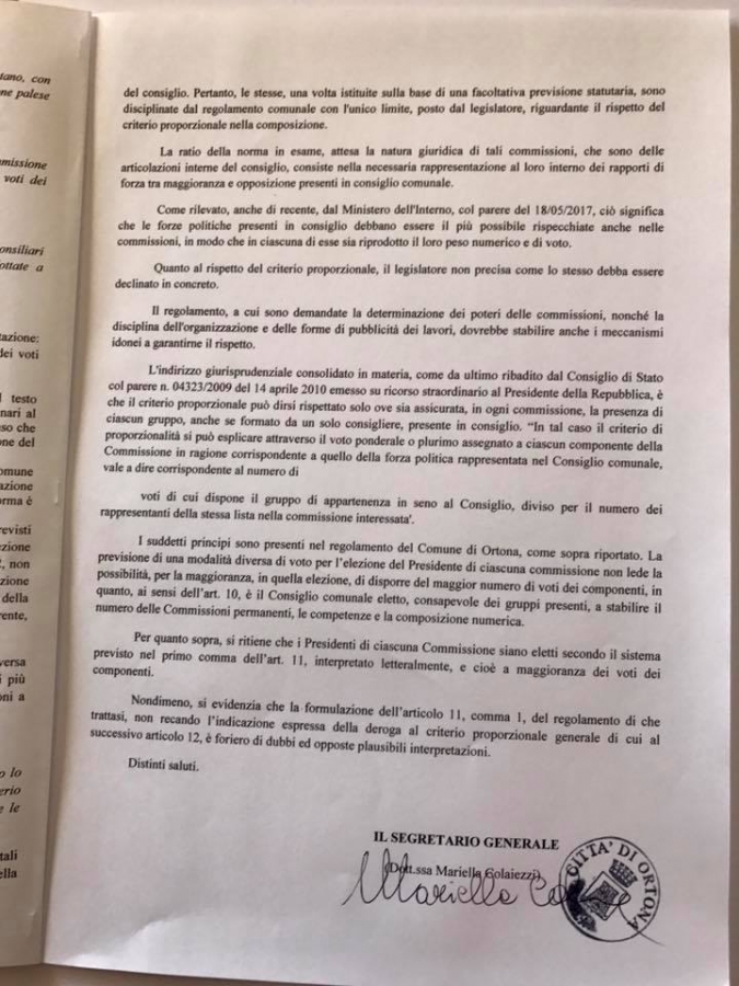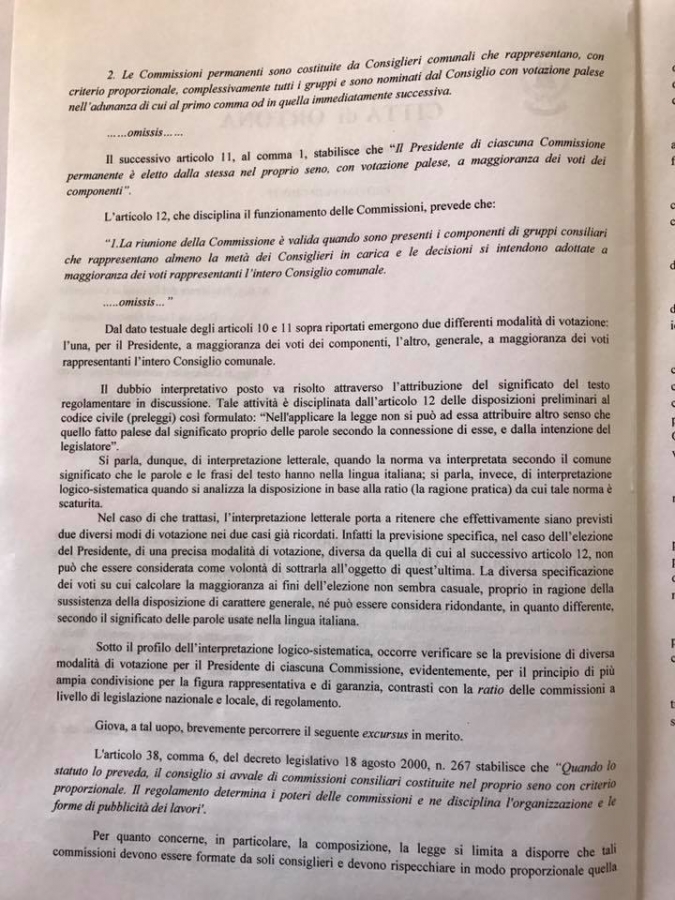 Presidenti delle commissioni consiliari. Una prova di forza ", osserva preoccupato Peppino Polidori, consigliere di opposizione di Centrodestra, "esercitata contro il parere tecnico della Segretaria comunale,