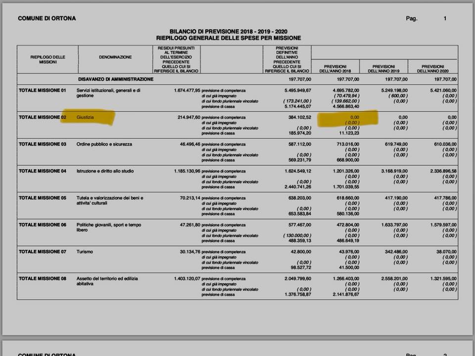 Sì, avete capito bene, per l'agricoltura, pesca e turismo in tutto Castiglione e il suo staff economico hanno previsto 53 mila euro - certo una manna per il commercio locale già in sofferenza di clientela - mentre per la Giustizia hanno previsto una spesa pari a zero, abdicando alla possibilità di riapertura dell’Ufficio del Giudice di Pace.