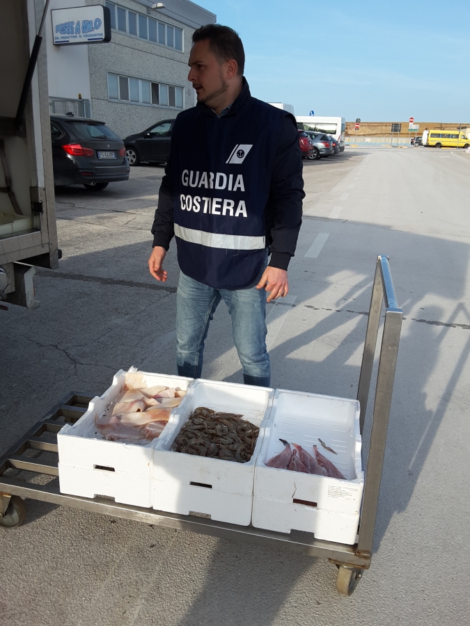 Continuano, lungo l’intera filiera ittica, i controlli del personale della Capitaneria di Porto di Ortona, impegnati nell’intero territorio provinciale, entroterra compreso. Negli ultimi giorni i militari della Guardia Costiera hanno sanzionato un venditore ambulante nel comune di Guardiagrele, in quanto aveva in esposizione sul proprio banco di vendita prodotto ittico privo di qualsiasi documento di tracciabilità che ne consentisse di ricostruire la provenienza, la data di pesca ed i passaggi subiti prima di essere messo in commercio: Alla sanzione, per un importo di 1.500 €, ha fatto seguito il sequestro del prodotto, circa 10 kg, distrutto e conferito ad una ditta abilitata al trattamento dei rifiuti, in quanto ritenuto dalla ASL non idoneo al consumo umano.