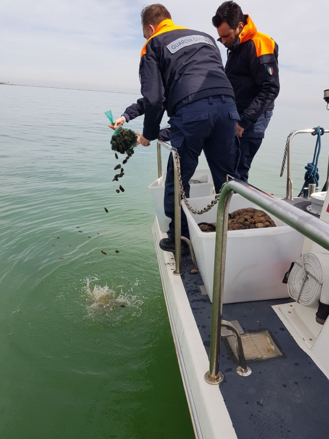 Ma l’intervento più significativo è stato effettuato proprio nel porto di Ortona, dove un privato, proveniente dal barese, è stato colto in flagrante, con circa 130 kg di frutti di mare destinati al mercato nero: il prodotto, prevalentemente noci di mare, canestrelli, murici e cozze pelose, ossia specie particolarmente pregiate per la ristorazione, in vista soprattutto delle festività pasquali, è stato sequestrato e rigettato in mare in quanto ancora vivo, mentre al trasgressore è stata comminata una sanzione di 1.500 €.