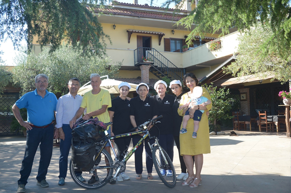 Il cicloamatore che dal gennaio 2000 ha iniziato un lungo tour dell'Italia, dopo aver toccato 154 Paesi, con la sua mountain bike vuole raggiungere Pechino nel 2028. Un viaggio in giro per il mondo che qui in Italia vede la collaborazione di Federalberghi e della Coldiretti.