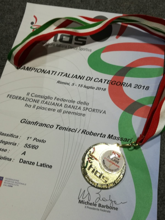 Lunedi 9 luglio a Rimini Fiera Roberta Massari e Gianfranco Tenisci si sono laureati campioni italiani 2018 di danze latine classe A