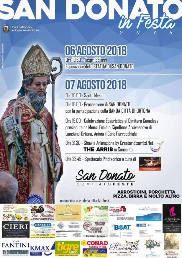 Inoltre il comitato ringrazia la presenza di Sua Eccellenza il Vescovo Mons. Emilio Cipollone, del parroco uscente Don Gianni dell’Utri e del nuovo parroco della parrocchia di Santa Maria di Costantinopoli padre Juan Mancia, il Sindaco di Ortona Leo Castiglione e tutta l’amministrazione comunale.