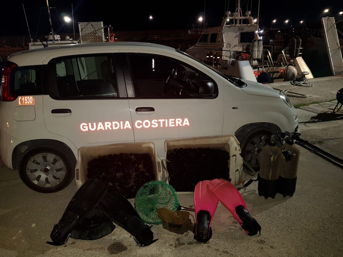 Tuttavia mediante osservazioni in borghese dei movimenti dei sospettati, e dopo aver recuperato le targhe dei veicoli con cui erano soliti muoversi, avendo appurato gli orari ed i giorni di maggiore attività, i marinai hanno organizzato un vero e proprio blitz, con ben 4 pattuglie dislocate, fin dal crepuscolo, in vari punti tra Fossacesia e Ortona, ed appostate in modo da anticipare l’arrivo dei pescatori. Così, con il primo buio, in località “Foce”, nel territorio di Rocca San Giovanni, hanno potuto osservare sia il posizionamento delle sentinelle, sia i contatti di queste con i subacquei. Usciti allo scoperto nel cuore della notte, quando il bottino di pesca era ormai acquisito, i militari hanno potuto verbalizzare i trasgressori colti in flagrante, e sequestrare tutto il prodotto pescato, circa 800 ricci e diversi chili di polipi, oltre all’attrezzatura utilizzata, in particolare bombole, pinne e pesi da sub.