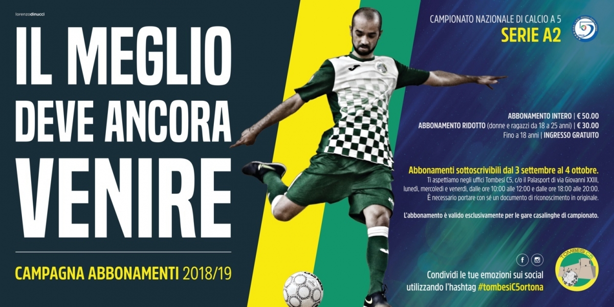 A partire da lunedì prossimo, 3 settembre, e fino al 4 ottobre, la Tombesi offre la possibilità ai suoi sostenitori di scegliere fra varie proposte di abbonamento per le 11 gare casalinghe del prossimo campionato di serie A2. Da quest'anno infatti, la società gialloverde ha deciso di chiedere un contributo per le partite casalinghe di campionato, coppa Italia e coppa della Divisione: il prezzo del biglietto è di 5 euro per tutte le competizioni, senza esenzioni o riduzioni, ma vi è appunto la possibilità di sottoscrivere vari tipi di abbonamento, validi solo per il campionato. L'abbonamento intero è al prezzo di 50 euro, mentre l'abbonamento ridotto (riservato alle donne e ai ragazzi tra i 18 e i 25 anni) si attesta sui 30 euro. Per i ragazzi al di sotto dei 18 anni l'ingresso nelle gare di campionato sarà invece gratuito. Gli abbonamenti saranno sottoscrivibili nella nuova sede della Tombesi presso il Palazzetto dello Sport di Ortona, il lunedì, mercoledì e venerdi, dalle 10 alle 12 e dalle 18 alle 20, previa presentazione di un documento di identità valido.