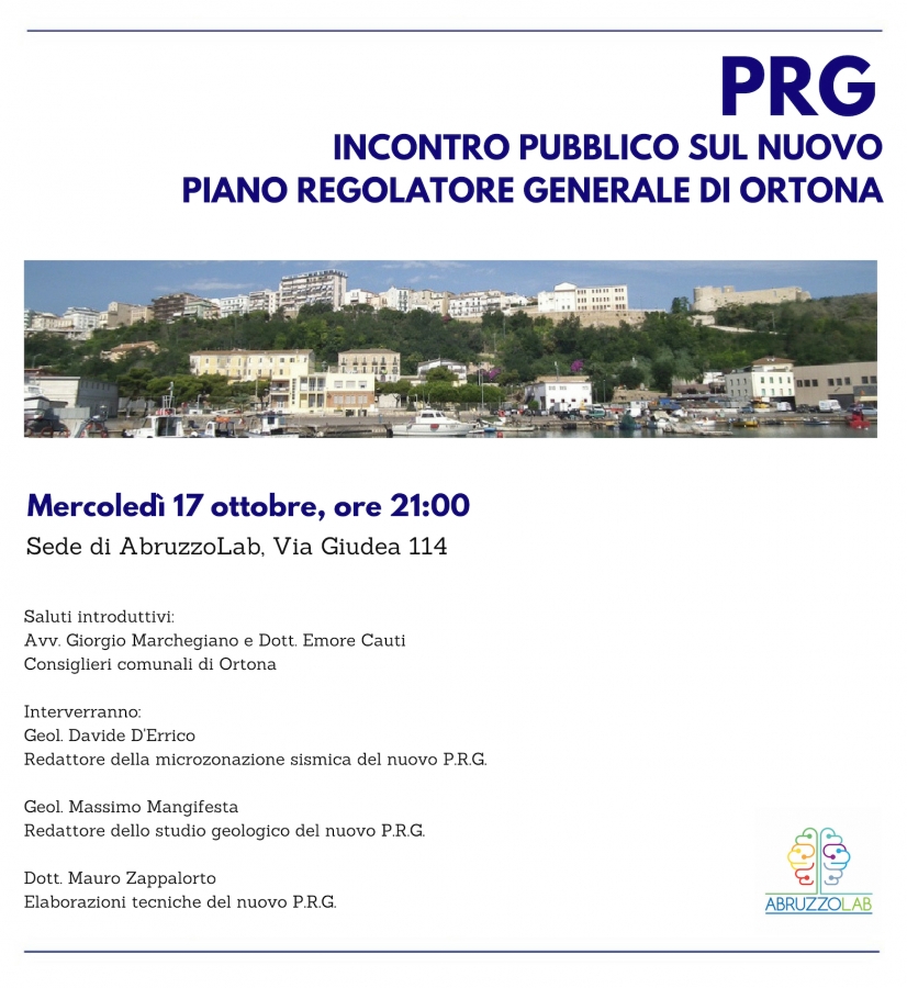 Dopo i saluti introduttivi dei Consiglieri comunali Avv. Giorgio Marchegiano e Dott. Emore Cauti, interverranno il Geol. Davide D'Errico, redattore della microzonazione sismica del nuovo P.R.G., il Geol.Massimo Mangifesta che del nuovo P.R.G. ha redatto lo studio geologico e il Dott. Mauro Zappalorto che ne ha curato le elaborazioni tecniche.