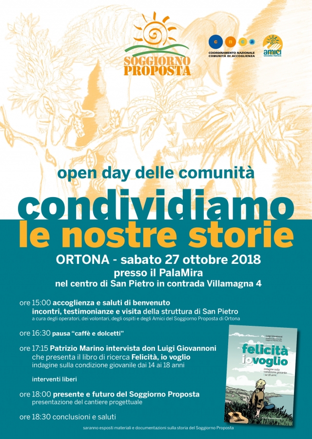 Il 20 e il 27 ottobre, in tanti luoghi d’Italia, comunità di accoglienza e di recupero, centri di ascolto, spazi educativi delle organizzazioni aderenti alle reti di solidarietà, saranno aperti alla cittadinanza e alle comunità ecclesiali. Per presentare se stesse, il loro lavoro, le persone - operatori e utenti - che li animano. La scelta delle date non è casuale: proprio a ottobre 2018 la Chiesa cattolica organizza il Sinodo dei Giovani, un’occasione importante per mettersi in ascolto del mondo giovanile.