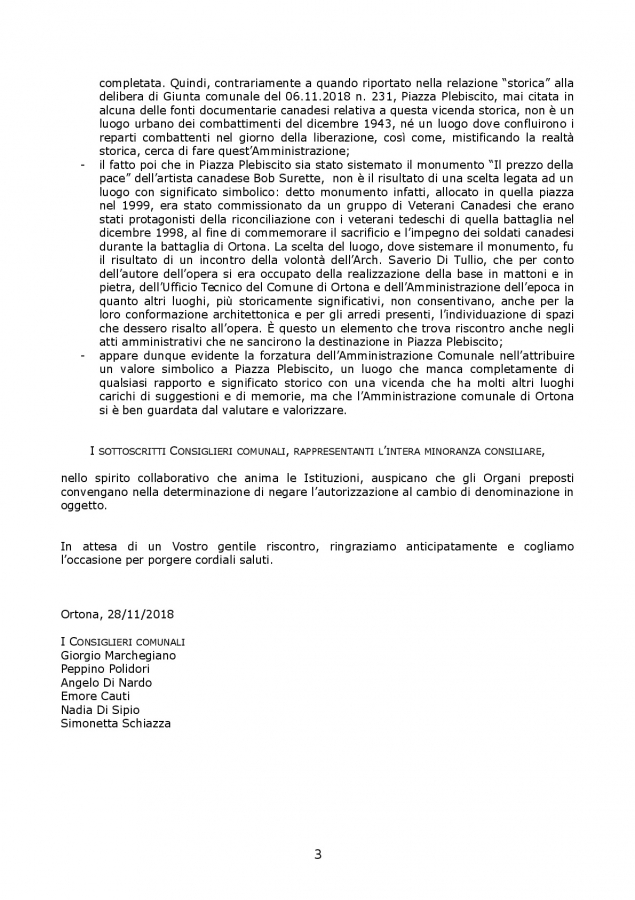 Nell'attesa, insieme agli altri Consiglieri comunali di minoranza Peppino Polidori, Angelo Di Nardo, Simonetta Schiazza e Nadia Di Sipio, abbiamo inviato una nota con parere contrario alla Prefettura di Chieti, alla Soprintendenza e alla Deputazione di Storia Patria.