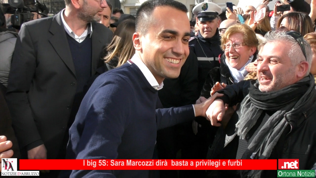 ministro delle attività produttive e lavoro, vice premier, che fa il resoconto di tutto: del suo impegno nel dare “sostegni veri e nuove opportunità ai giovani che cercano in lavoro, alle famiglie in difficoltà, a quanti hanno bisogno di un sostegno”. Ricorda la sua lotta al gioco d’azzardo e racconta come gli abruzzesi spendano una cifra record : “due miliardi l’anno in gioco d’azzardo. Io ho messo tasse sulle lobby delle scommesse d’azzardo e con quesì soldi paghiamo una parte del Reddito di cittadinanza. Per questo ho ricevuto attacchi e insulti”, racconta Di Maio “per aver tassato il gioco d’azzardo che crea dipendenza tra i giovani e distrugge le famiglie, ma sono fiero di questo mio impegno. Così come lo sono per aver dato la possibilità, con quota 100 di mandare in pensione chi ha lavorato una vita e magari in settori di lavoro duro. Non abbiamo la bacchetta magica ma stiamo lavorando per i cittadini e lo faremo sempre di più con impegno, onestà e con una nuova visione della politica. le lobby ci attaccano ma noi resisteremo. Noi abbiamo detto e ripetiamo basta con i furbi e i disonesti”. Sui lavoratori delle società di ricerca petrolifera che contestano i 5s per il blocco delle trivelle, Di Maio evita polemiche e si mostra comprensivo. “Non sono nostri nemici e comprendo la loro preoccupazione”, osserva cercando di non sollevare altre polemiche, “ma noi non taglieremo posti di lavoro, tuttavia ma vogliamo dire le cose come stanno: la produzione petrolifera in Italia rappresenta il 7% che poi vediamo all’estero. Quindi uno spreco di risorse e nel contempo creiamo rischi ambientali. Noi creeremo nuovi posti di lavoro puntando sulle energie alternative. Non è facile ma bisogna iniziare a ragionare in modo diverso”. Gli applausi sono tutti per Luigi di Maio che conquista la platea mostrando ora il tono duro anche con il collega e competitore di governo, Matteo Salvini e la Lega. Di Maio va in attacco, e spiega che il limite della sua pazienza sta per esaurirsi. “Si insiste sulla Tav. Ma per noi non si farà perché con quesì soldi possiamo realizzare migliaia di nuovi asili”, assicura di Maio, “sistemare le strade in dissesto, mettete in sicurezza strutture oggi a rischio, possiamo realizzare una linea ferroviaria veloce tra Pescara e Roma. Se si vuole, invece, insistere sulla Tav ossia su qualcosa che ci divide allora si vuole rompere. Io ho questo sospetto che si voglia puntare ad una rottura”. Il finale è un crescendo Di Maio affronta tutti i temi in campo puntando sul lavoro, sul “futuro” sul l’impegno dei 5S , sulle “capacità e concretezza” di Sara Marcozzi. “Votare per i 5s è votare per una Italia migliore, per un Abruzzo migliore. Noi”, promette il ministro del lavoro e attività produttive, “non vi lasceremo soli e torneremo perché ci avete dimostrato la vostra fiducia e grande affetto. Saremo con voi per fare di più e per cambiare veramente”. La conclusione della kermesse elettorale è classica: tutti i candidati e leder 5S sul palco per il turbinio di foto e video. Poi l’uscita che diventa più difficoltosa dell’entrata al teatro. Una signora anziana abbraccia e bacia su una guancia di Battista strattonato e coccolato dalle fan politiche come un attore, lui gentile non respinge nessuno e gli si stringono tutte pronte per un selfie. Di Maio bloccato di nuovo da una pletora di telecamere davvero non sa più dire, ma ringrazia una ragazza per un libro che gli viene consegnato alvolo. Sarà Marcozzi ripete “calma, calma”, temendo che la calca crei qualche problema. All’uscita i militanti e sostenitori dei 5S scandiscono: “bravi, bravi, bravi”. Mentre a distanza gli operai del settore di ricerca petrolifera rispondono con “buffoni” e “vergogna”. I leader 5s salgono su un furgone nero dai vetri oscurati e ripartono tra la folla che ancora applaude e manda baci di ammirazione politica. Gli operai tolgono gli elmetti. Un carabiniere graduato che si era prodigato in ogni modo dalla mattina per evitare guai, ora sospira sodisfatto: “Ce l’abbiamo fatta. Però il nostro era dovere”.