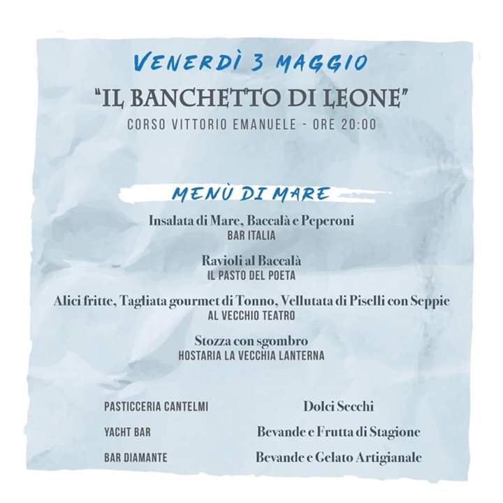 – sottolinea l'assessore agli eventi Cristiana Canosa – che saranno completati con bevande, frutta, gelato e dolci. La cena sarà poi allietata da animazioni ispirate al periodo storico del navarca Leone e si cenerà sotto le luminarie che saranno accese per l'occasione a conclusione della serata».