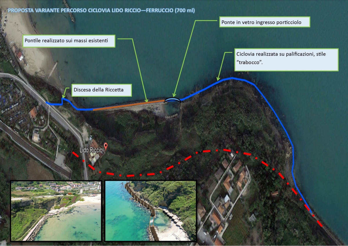 Entrando nel dettaglio , la ciclopedonale passerà al Lido Riccio ed il progetto attuale prevede il passaggio della ciclopedonale dentro la galleria dismessa nel 1956 .