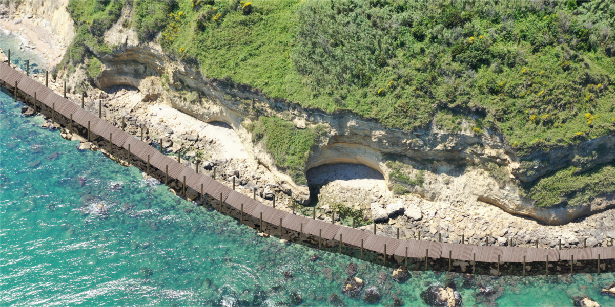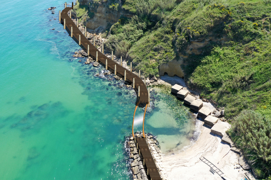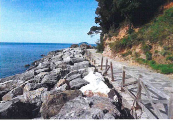 Concretizzando l'idea suggerita nella proposta – la scogliera di protezione con sopra la passerella ciclabile - “ si prendono due piccioni con una fava “
