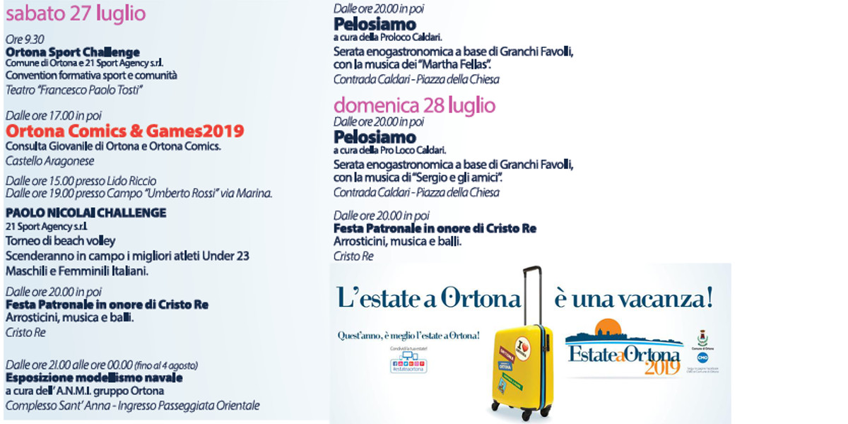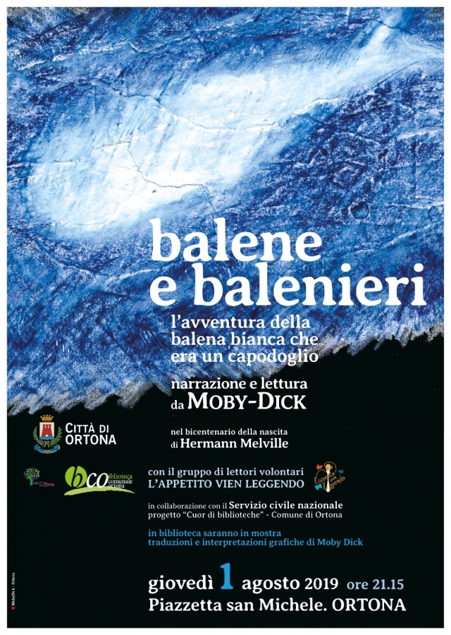 Le iniziative culturali estive del Comune di Ortona proseguono con il primo appuntamento del mese di agosto a piazzetta San Michele, suggestivo angolo del centro storico, con la lettura e la narrazione del romanzo Moby Dick che si terrà giovedì 1 agosto, in occasione del bicentenario della nascita del suo autore Herman Melville, alle ore 21,15.
