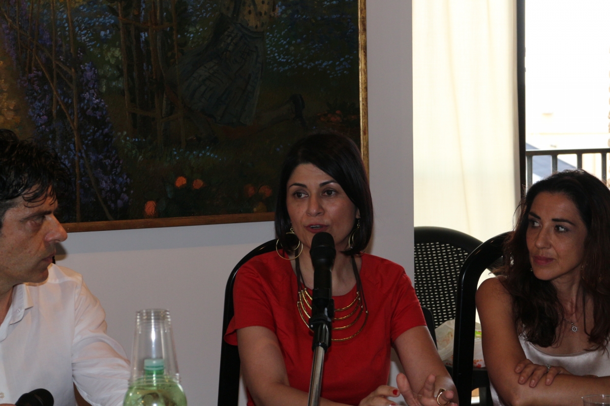 ha sottolineato come le donne e le artiste iraniane sono portatrici di pace e più che fare una carrella di presentazione ha voluto dare voce a tre delle otto artiste iraniane presenti in un'interessante tavola rotonda alla quale ha partecipato anche