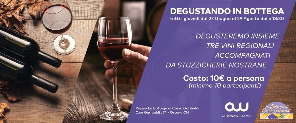 Inoltre, ogni giovedì, fino al 29 agosto: Degustando in Bottega un evento da non perdere per conoscere e scoprire i migliori sapori della gastronomia locale ed i vini autoctoni della Regione!