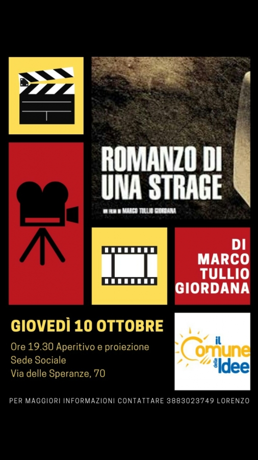 Si parte giovedì 10 ottobre alle 19.30 con la proiezione del film "Romanzo di una strage" del regista Marto Tullio Giordana presso la Sede sociale in via delle Speranze 70. Questo è solo il primo film di un cineforum composto da 4 pellicole che raccontano l'Italia degli anni '70.