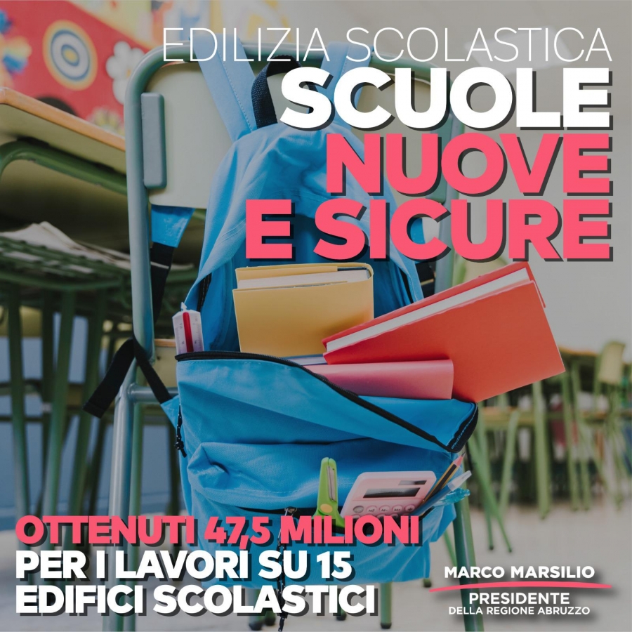 La giunta di centrodestra, guidata dal presidente Marco Marsilio, ha infatti ottenuto 47,5 milioni di euro che saranno destinati ad opere di edilizia scolastica. "Si tratta di una cifra consistente – spiega Angelo Di Nardo, capogruppo di Fratelli d'Italia, Lega e lista Libertà e Bene Comune al Consiglio comunale di Ortona - che è frutto della concessione di un prestito da parte di Cassa Depositi e Prestiti".