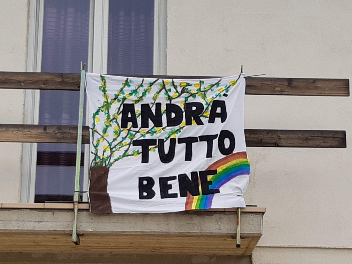 “Andrà tutto bene” come scritto su un balcone a San Giorgio