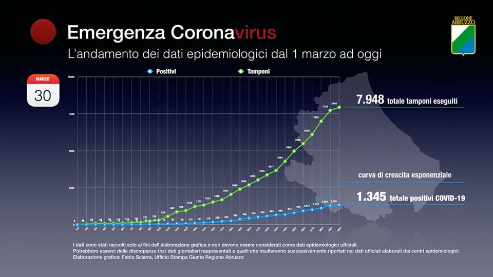 dall’inizio dell’emergenza, sono stati registrati 1.345 casi positivi al Covid 19, diagnosticati dai test eseguiti nel laboratorio di riferimento regionale di Pescara, anche attraverso l’Istituto Zooprofilattico di Teramo. Rispetto a ieri si registra un aumento di 52 nuovi casi.