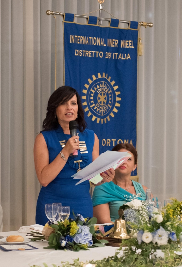 Paola Della Frana Primavera ha quindi indicato i punti salienti del programma che caratterizzerà il suo anno, ispirato dal tema della Presidente Internazionale Bina Vyas “Lead the change”, che rispecchia lo spirito innerino nell’ideale di un forte impegno al cambiamento.