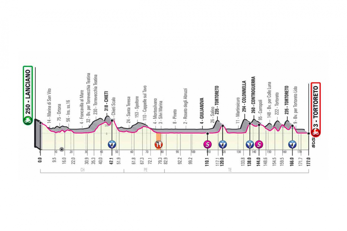 Partenza della 10^ tappa da Lanciano alle 12:05 arrivo a Tortoreto previsto dopo le 16