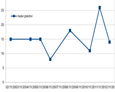 Oggi ci sono 14 nuovi casi positivi con età tra 4 e 78 anni.