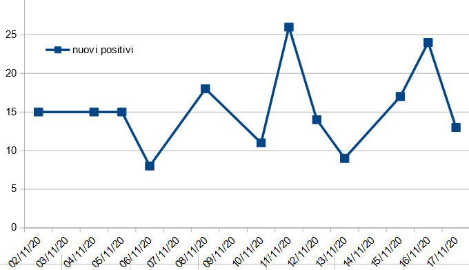 Oggi sono stati comunicati 13 nuovi casi positivi