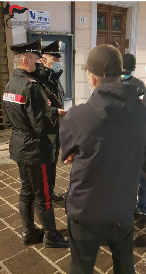 Le pattuglie impegnate hanno riscontrato il pieno rispetto da parte dei cittadini delle attuali norme di contingentamento a fronte di un’unica violazione accertata nel comune di Miglianico. Qui a metà sera i carabinieri dell’aliquota Radiomobile hanno sorpreso in un noto bar il gestore che somministrava bevande a tre avventori che, tra l’altro, non indossavano i dispositivi di protezione individuali per le vie respiratorie. Il gestore è stato quindi sanzionato per la somministrazione di alcolici all’interno dell’esercizio in violazione dell’attuale D.P.C.M. così come i tre avventori sorpresi senza D.P.I. , mentre si è attuata la sospensione della licenza del bar in attesa dei provvedimenti della Prefettura di Chieti.