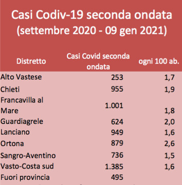 Il secondo, preoccupante, primato è quello di essere il Comune della Provincia di Chieti col più alto numero di persone contagiate ogni 100 abitanti durante la seconda ondata della pandemia (settembre 2020 – 9 gennaio 2021): nel nostro Comune infatti, negli ultimi quattro mesi 694 persone hanno contratto il virus, 3.1 ogni 100 abitanti. Dopo di noi, San Giovanni Teatino e Guardiagrele con rispettivamente 314 e 201 persone colpite dal Covid-19 e un indice di contagio di 2.3 ogni 100 abitanti.