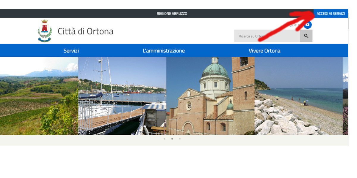 L'accesso ai servizi online si effettua attraverso il sito comunale cliccando sulla voce in alto a destra "accedi ai servizi"