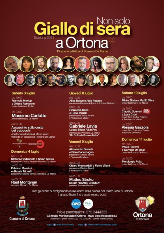 Già dallo scorso anno, con la presenza di autori del calibro di Marcello Fois, Diego De Silva, Valerio Varesi, ma anche con il teatro, i fumetti, la televisione (con la presenza di Francesco Acquaroli intervistato da Tiberio Timperi) l'evento ha aperto le porte alla cultura e all'intrattenimento a trecentosessanta gradi. C'è stato spazio per autori ortonesi non giallisti e anche quest'anno l'attenzione agli artisti locali si concretizzerà con una rappresentazione teatrale dell'associazione Amici del teatro nella serata inaugurale del 3 luglio. In scena la pièce originale Assassinio sulla costa dei trabocchi.