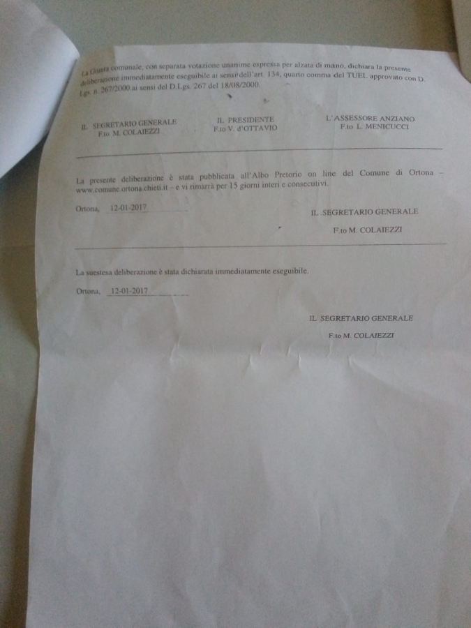 L’amministrazione D’Ottavio poi si dimise. L’amministrazione Castiglione successivamente convocò un incontro presso l’associazione a Villa Pincione e dopo, quella delibera fù modificata. Anche Marchegiani tenne un incontro con i residenti.”
