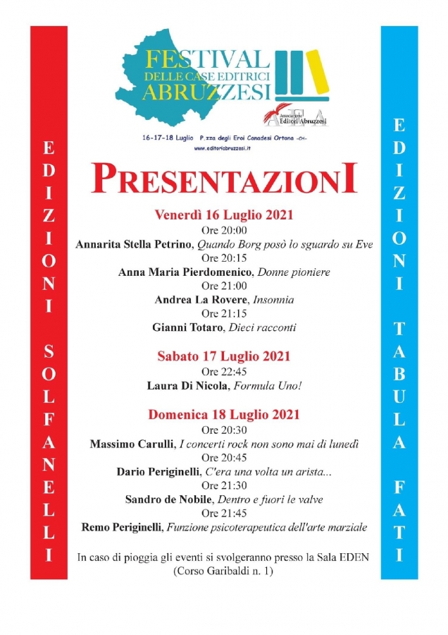 Il Festival, a cura dell'Associazione Editori Abruzzesi, è arricchito da presentazioni di libri, firmacopie e incontri con gli autori