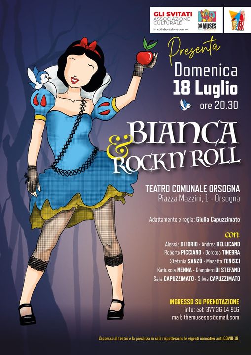Giulia Capuzzimato che ha curato l’adattamento e la regia dello spettacolo ricorda: "Gli svitati è una compagnia amatoriale nata dal desiderio di divertirsi e di farlo insieme attraverso il teatro. Lo stop forzato di due anni dovuto alla pandemia ha fatto crescere la voglia di ritrovarsi per cui con Bianca & Rock'n'Roll i protagonisti non mancheranno di regalare al pubblico spensieratezza all’insegna del divertimento”.