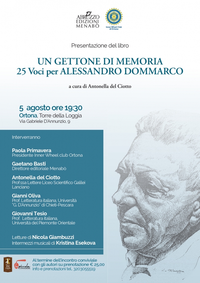 Il 5 agosto alle ore 19:30 a Torre della Loggia presentazione dell'ultima novità editoriale della Menabò: Un gettone di memoria. 25 voci per Alessandro Dommarco curato da Antonella del Ciotto (Edizioni Menabò).