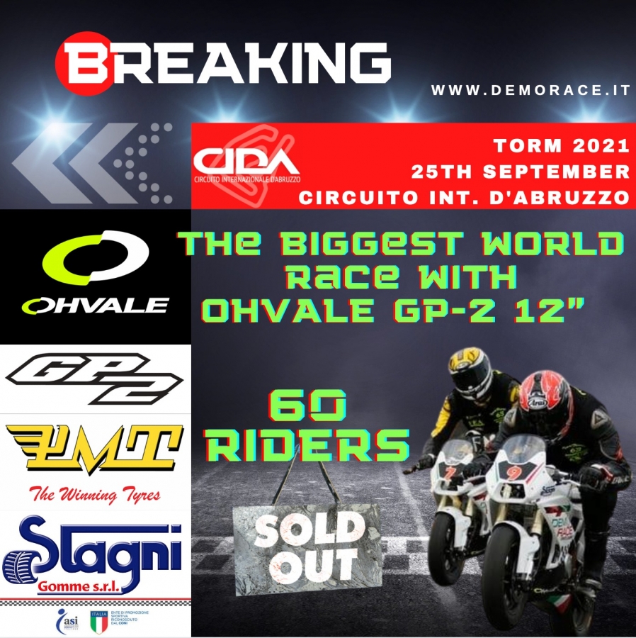 Questo weekend il Circuito Internazionale d'Abruzzo di Ortona, ospiterà due giorni di gare che vedranno protagoniste sia le due che le quattro ruote. Due i trofei che si svolgeranno per le due ruote: Il TORM aprirà le danze nella giornata di Sabato 25, a scendere in pista saranno le Ohvale GP-2 *12 con ben sessanta piloti a darsi battaglia, divisi in varie categorie di peso. Un traguardo importante per il campionato che con questo appuntamento segna la gara con il numero più alto di piloti con Ohvale GP-2 *12. Penultimo appuntamento stagionale prima della tappa finale che si svolgerà il prossimo mese nel Lazio.