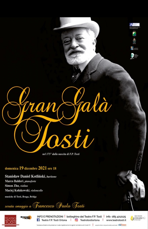 Si svolgerà domenica 19 dicembre 2021 alle ore 18.00, presso il teatro F.P.Tosti, il Gran Galà Tosti, concerto promosso dall’Istituto Nazionale Tostiano.