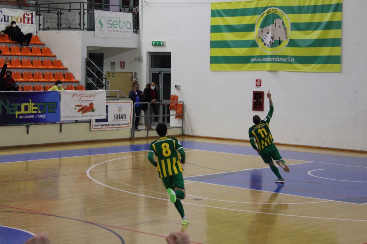 Per la prima volta in stagione, la Tombesi mette in fila due vittorie consecutive, sfata il tabù del palazzetto di casa, dove finora aveva solo perso, e compie un passo in avanti importantissimo nella lotta per non retrocedere. Priva dello squalificato Masi, la squadra ortonese ha impiegato dieci minuti per trovare gli spazi nell'attenta retroguardia della Mirafin, costretta a rinunciare, dal canto suo, al portiere titolare Favale e al capitano Moreira.