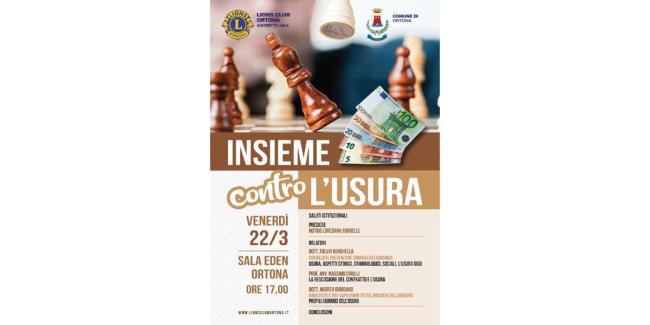 L’usura è purtroppo tema di grande rilevanza sul piano sociale e l’Abruzzo, nostra Regione, non è immune da questo male. “L’usura sfrutta la vulnerabilità economica e anche l’ingenuità delle persone”, spiegano a nome del Lions Club Ortona, il notaio Loredana Borrelli e la presidente