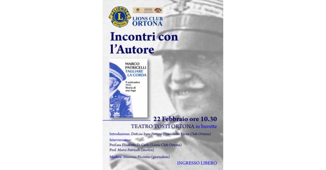 Sabato 22 febbraio 2025 nella Buvette del Teatro Tosti l’incontro con lo storico Marco Patricelli per la presentazione del libro “Tagliare la corda 9 settembre 1943” con la partecipazione della professoressa Elisabetta Di Carlo e la presidente del Lions Club Ortona Irene Ferrara.