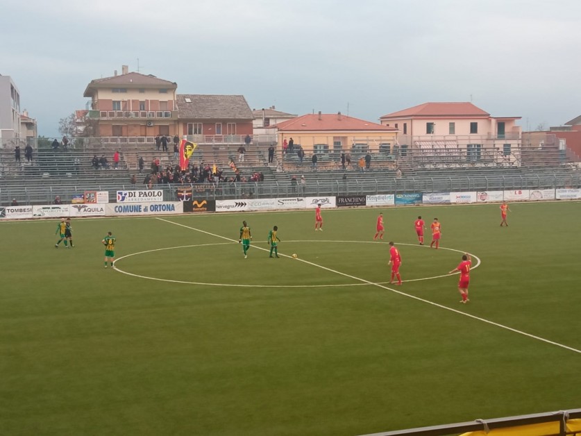 Commentare una gara di calcio e' alquanto difficile perché ognuno ha le proprie opinioni ma faccio del mio meglio e le mie considerazioni sono sempre mirate per dare a chi non e' presente alla gara un quadro il più possibile aderente a quanto si e' visto in campo . Il risultato finale di 3-1 a favore del Giulianova non racconta bene quanto espresso dalle due squadre . Gli ospiti sono stati agevolati a mio parere da un lampo dell'arbitro che senza offesa per la categoria ha scambiato letteralmente “ lucciole per lanterne ” ed ha assegnato o per meglio dire elargito un rigore inesistente alla squadra Giuliese che non si e' fatta sfuggire l'occasione per andare in vantaggio dopo che l'Ortona aveva mostrato di essere in gara in modo agevole e per certi versi anche inaspettatamente . Ricordo che i gialloverdi nel primo tempo hanno mantenuto una supremazia territoriale ed anche di efficacia e al 43' sono passati in vantaggio con un lampo dei Lemou , davvero un goal di pregevole fattura . Purtroppo due minuti dopo per uno svarione a centrocampo gli ospiti rimettevano in parità la gara . Certamente per come si era svolta la gara fino a quel momento era davvero arduo sostenere ed acclarare la veridicità della situazione di classifica precaria dell'Ortona e ai piani alti per il Giulianova . Ricordo che anche con l'Aquila la scorsa domenica i gialloverdi avevano nel primo tempo disputato una gara di tutto rispetto ma evidentemente nel secondo tempo qualcosa s'inceppa perché non e' la prima volta che accade ed anzi sta diventando una costante , indice questo di qualcosa da correggere e che purtroppo non ancora si riesce a farlo . Una cosa comunque va detta e rimarcata ossia che la squadra Ortonese una volta che passa in svantaggio sembra letteralmente perdere la bussola e diventa nervosa , sembra un'altra squadra ed infatti raramente riesce a riemergere . Questa e' una grave pecca perche' fin tanto si rimane in partita c'e' sempre la possibilità di cambiare il risultato ma se da quel momento si abdiga allora diventa buio pesto e non si può che perdere . Questo aspetto bisogna assolutamente migliorarlo altrimenti la salvezza diventerà una chimera . Di positivo mi piace rimarcare che i due acquisti Lanza e Midolo schierati oggi hanno fatto vedere buone cose e sicuramente possono contribuire anche loro alla risalita della classifica che torno a ripetere secondo me non rispecchia il reale valore della nostra compagine ma purtroppo i risultati dicono il contrario e serve quindi un'ossigenazione forzata per risollevare il paziente che attualmente sembra in “ coma farmacologico ” . La fiducia e' una cosa seria e se non e' corroborata da risultati effettivi sfuma come neve al sole . Urge una vittoria che ridia linfa vitale alla squadra e l'occasione e' per giovedì prossimo quando in trasferta incontreremo la Torrese . Naturalmente al Mister Sansovini spetta il compito principale difficile ma necessario , ricordo che quando si arriva a queste situazioni di estrema precarietà solo il lavoro di un vero condottiero può risolvere la situazione .
