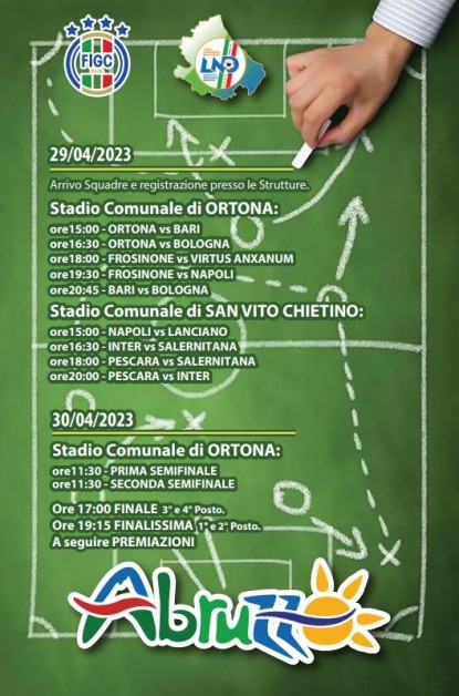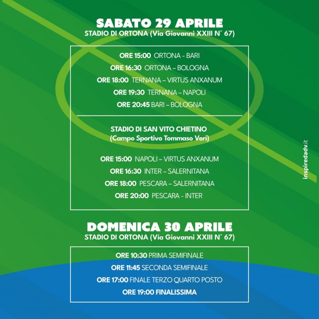 Scenderanno in campo le prestigiose squadre U15 : Inter, Napoli, Bologna, Pescara, Bari, Ternana, Salernitana, Ortona, Virtus Anxanum.