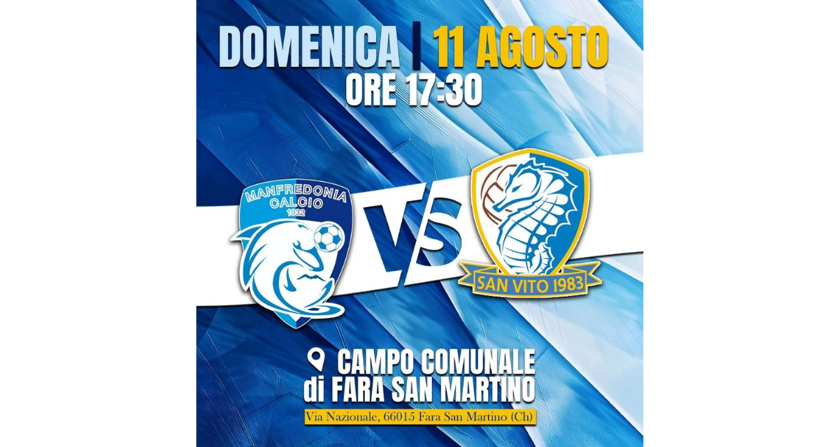 Infatti domenica 11 Agosto, alle ore 17.30 presso il comunale di Fara San Martino, si disputerà un incontro di lusso tra il San Vito '83 e il Manfredonia Calcio 1932, squadra militante in Serie D.