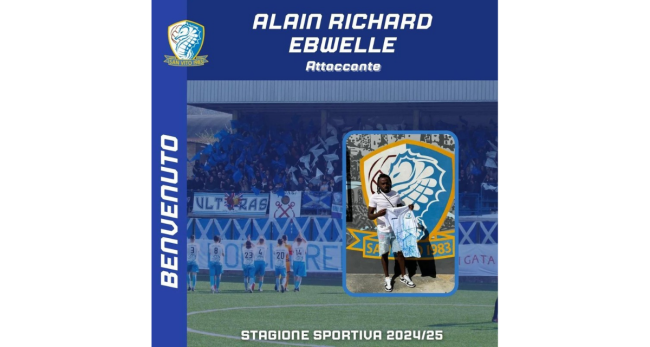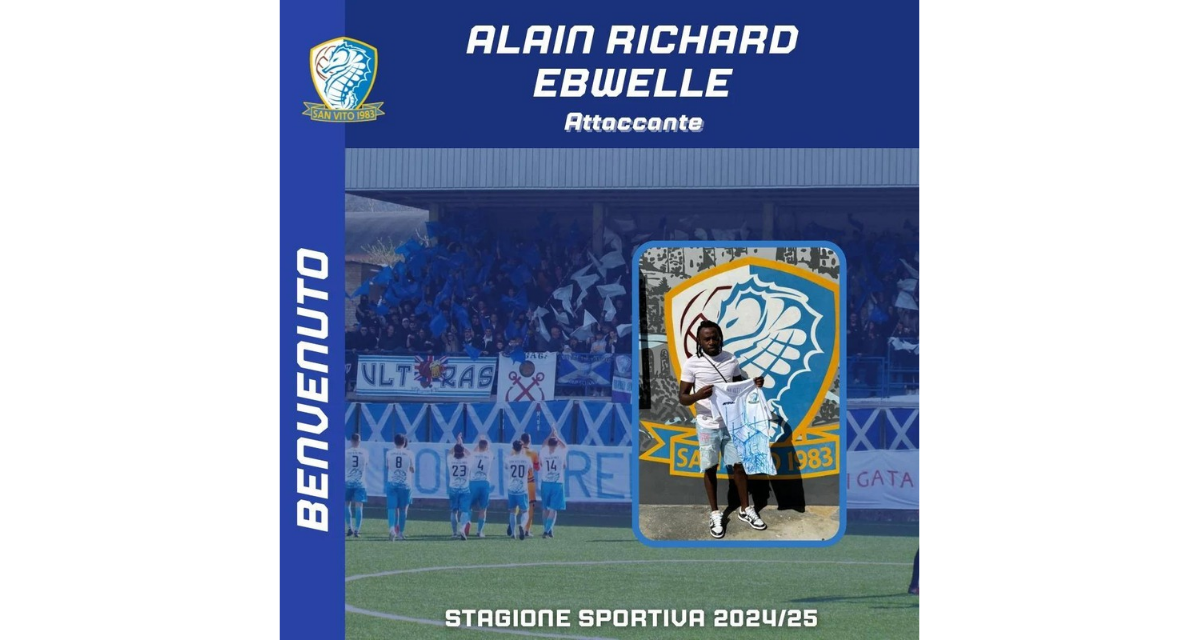 La Società ASD San Vito '83 ha annunciato l’arrivo del camerunense Alain Richard Ebwelle, calciatore passato a 11 anni dalla Eto’o Academy alla cantera del Barcellona, dove ha fatto tutta la trafila delle giovanili fino ai 19 anni; da lì la sua carriera è proseguita tra Spagna, Finlandia, Polonia e Grecia.