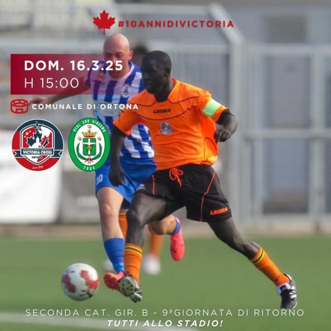 Domenica 16 marzo alle ore 15.00, presso il Comunale di Ortona, ci sarà l' incontro di calcio tra la Victoria Cross Ortona ed il Real San Giacomo, la gara è valevole per la nona giornata di ritorno del Campionato di Seconda Categoria girone B.