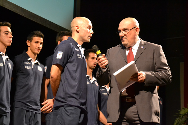 Il giornalista Rai Mariano D'Amico, presentatore dell'evento, ha chiamato ad uno ad uno sul palco tutta la rosa e lo staff protagonista del prossimo campionato di Serie A2 ormai alle porte.