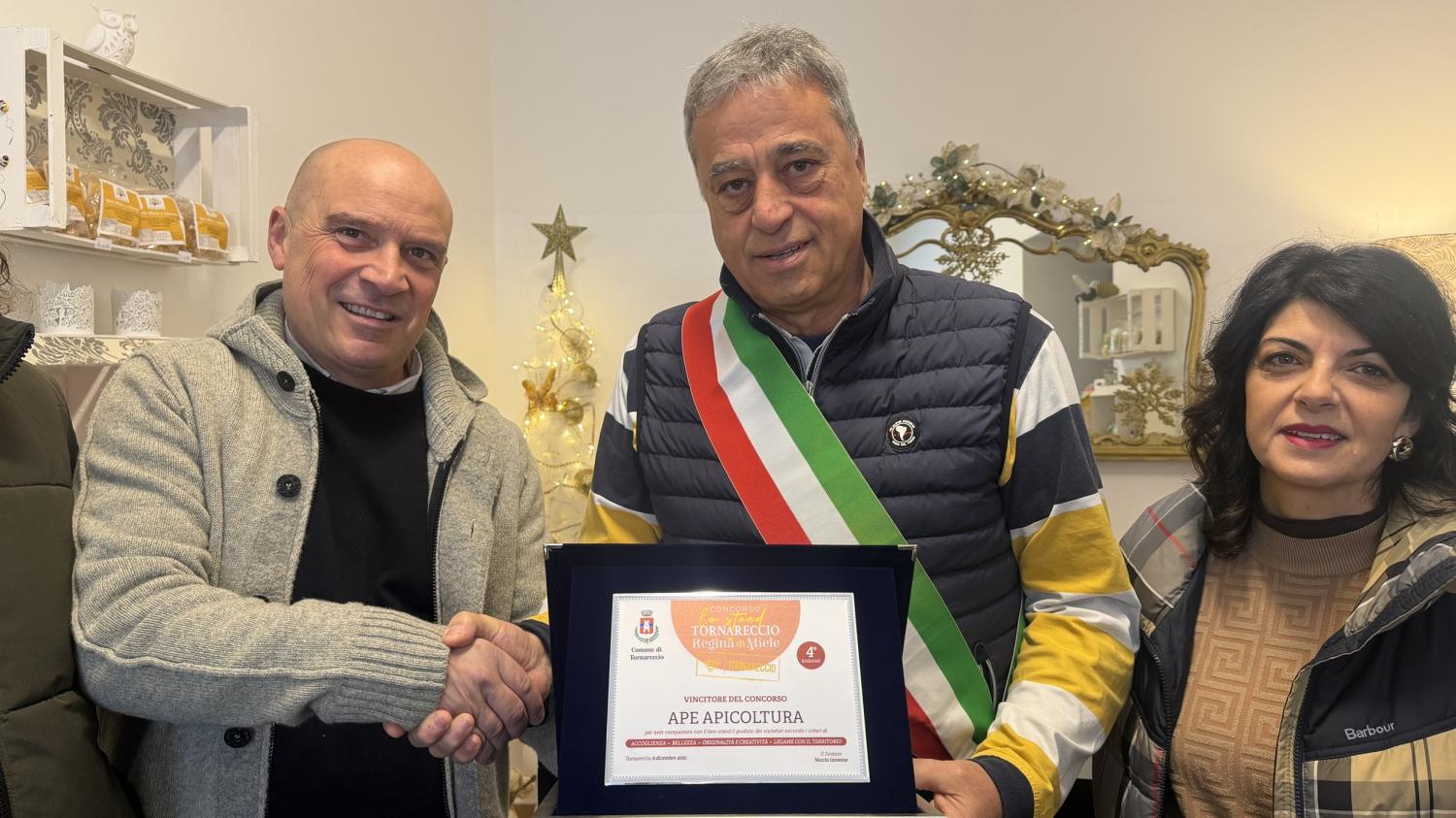 È stato consegnato dal sindaco Nicola Iannone e da alcuni membri dell’amministrazione comunale di Tornareccio il riconoscimento come miglior stand Regina di Miele 2025 all’azienda Ape Apicoltura, che con 183 voti è stato lo spazio espositivo preferito dai visitatori dell’evento dedicato al miele che si è svolto a settembre scorso.